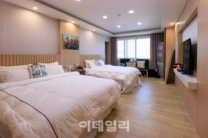 | | 경북 울진의 백암온천 객실 전경. 백암온천의 원조 격인 숙소로, 53도의 자연 용출 온천수를 전 객실에 공급하고 있다. |